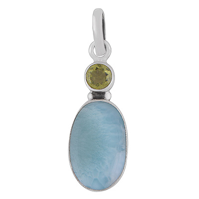 Gorgeous Seated Multiple Gemstones Peridot,Larimar Round,Pear Shape 925 Sterling Solid Silver Pendant