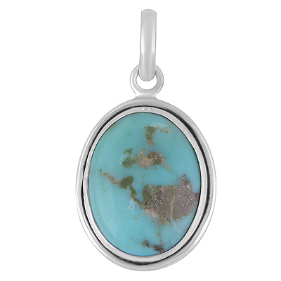 Plain Collet Natural Arizona Turquoise Oval Shape 925 Sterling Solid Silver Pendant