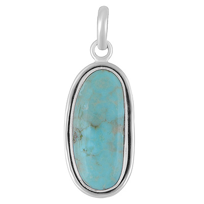 Plain Collet Natural Arizona Turquoise Oval Shape 925 Sterling Solid Silver Pendant