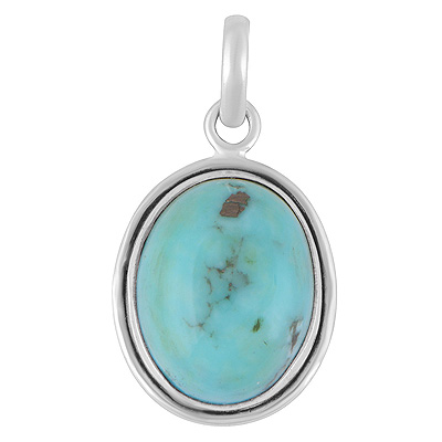 Plain Collet Natural Arizona Turquoise Oval Shape 925 Sterling Solid Silver Pendant