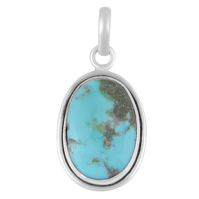 Plain Collet Natural Arizona Turquoise Oval Shape 925 Sterling Solid Silver Pendant