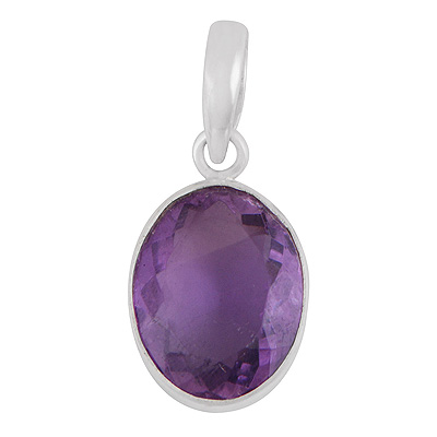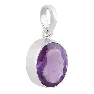 Home | Silver Pendants | Cut stone Pendants | Beautiful Plain Collet Amethyst Oval Shape 925 Sterling Solid Silver Pendant