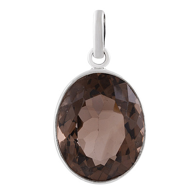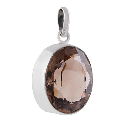 Home | Silver Pendants | Cut stone Pendants | Beautiful Plain Collet Smoky Topaz Oval Shape 925 Sterling Solid Silver Pendant