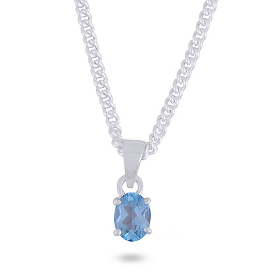 Home | Silver Pendants | Cut stone Pendants | Gorgeous Gemstone Nickel-free Rhodium Plated Swiss Blue Topaz Oval Shape 925 Sterling Solid Silver Pendant