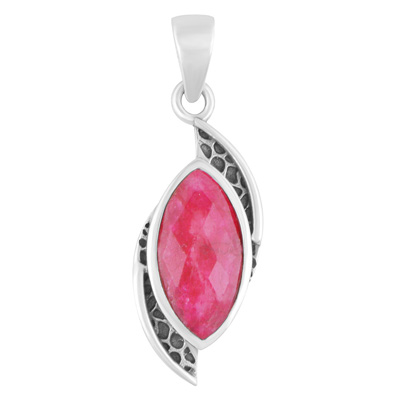Home | Silver Pendants | Cut stone Pendants | Gorgeous Oxidised Work Around Red Corundum Marquise Shape 925 Sterling Solid Silver Pendant