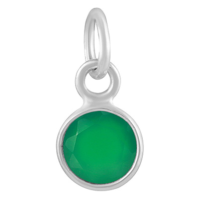 Home | Silver Pendants | Cut stone Pendants | Stunning Plain Bezel Green Onyx Round Shape 925 Sterling Solid Silver Pendant