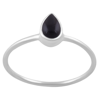 Beautiful Minimal Black Onyx Pear Shape 925 Sterling Solid Silver Ring