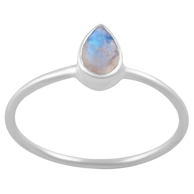 Home | Silver Rings | Cabochon Rings | Beautiful Minimal Rainbow Moonstone Pear Shape 925 Sterling Solid Silver Ring