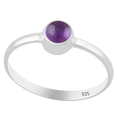 Beautiful Minimal Amethyst Round Shape 925 Sterling Solid Silver Ring