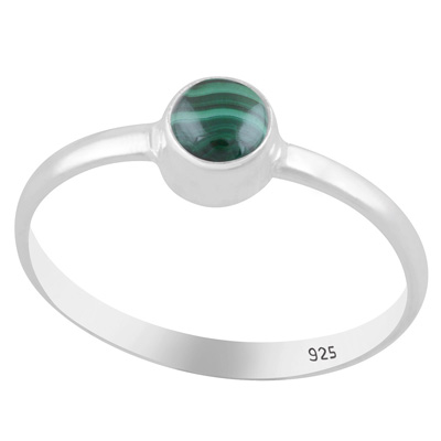 Beautiful Minimal Malachite Round Shape 925 Sterling Solid Silver Ring