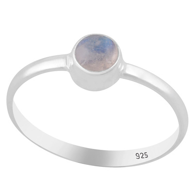 Home | Silver Rings | Cabochon Rings | Beautiful Minimal Rainbow Moonstone Round Shape 925 Sterling Solid Silver Ring