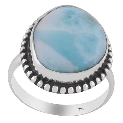 Home | Silver Rings | Cabochon Rings | Stunning Rawa Work Around Larimar Irregular Shape 925 Sterling Solid Silver Ring