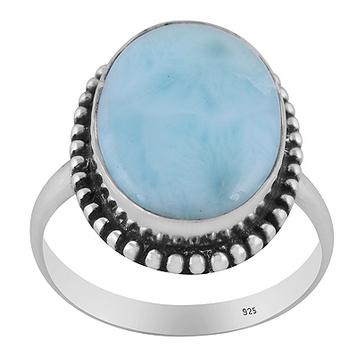 Stunning Rawa Work Around Larimar Oval Shape 925 Sterling Solid Silver Ring