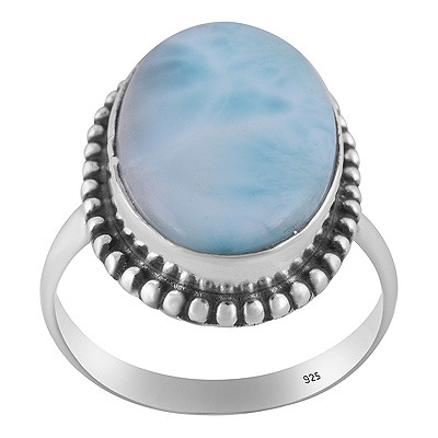 Stunning Rawa Work Around Larimar Oval Shape 925 Sterling Solid Silver Ring