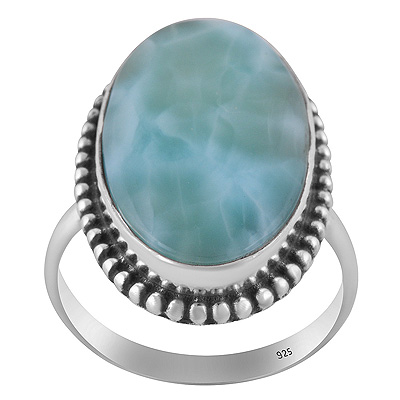 Stunning Rawa Work Around Larimar Oval Shape 925 Sterling Solid Silver Ring