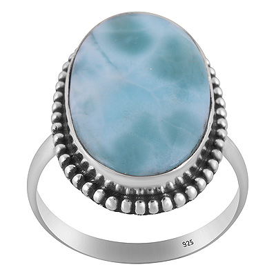 Stunning Rawa Work Around Larimar Oval Shape 925 Sterling Solid Silver Ring