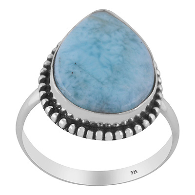 Stunning Rawa Work Around Larimar Teardrop Shape 925 Sterling Solid Silver Ring