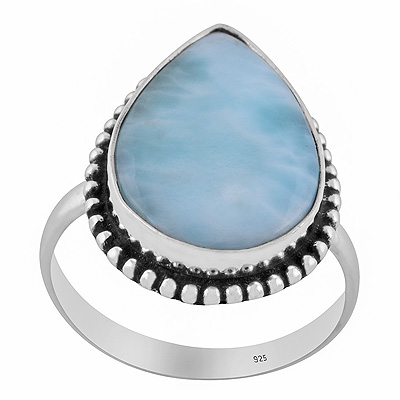 Stunning Rawa Work Around Larimar Teardrop Shape 925 Sterling Solid Silver Ring