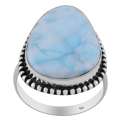 Stunning Rawa Work Around Larimar Irregular Shape 925 Sterling Solid Silver Ring