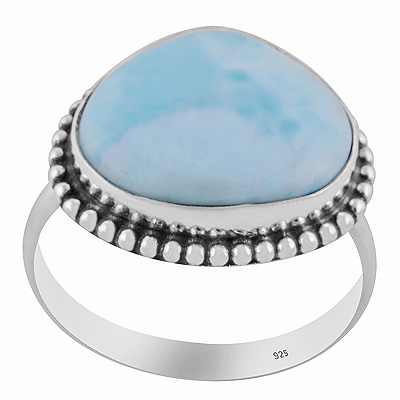 Home | Silver Rings | Cabochon Rings | Stunning Rawa Work Around Larimar Teardrop Shape 925 Sterling Solid Silver Ring