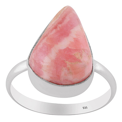 Gorgeous Huge Gemstone Rhodochrosite Pear Shape 925 Sterling Solid Silver Ring