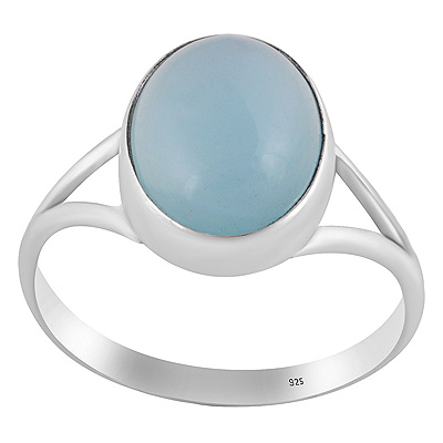 Stylish Split Shank Around Blue Chalcedony Oval Shape 925 Sterling Solid Silver Ring