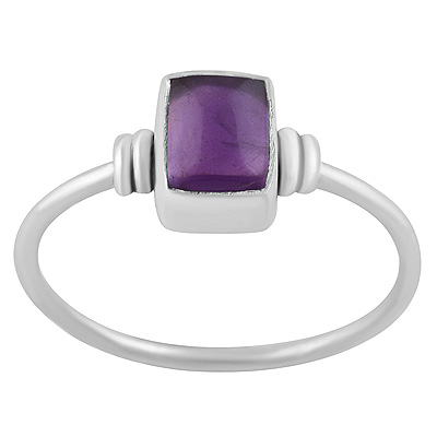 Stunning Plain Textured Amethyst Rectangle Shape 925 Sterling Solid Silver Ring