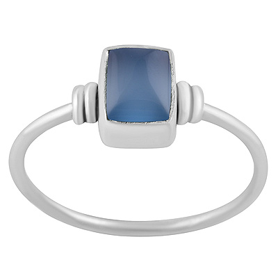 Stunning Plain Textured Blue Chalcedony Rectangle Shape 925 Sterling Solid Silver Ring