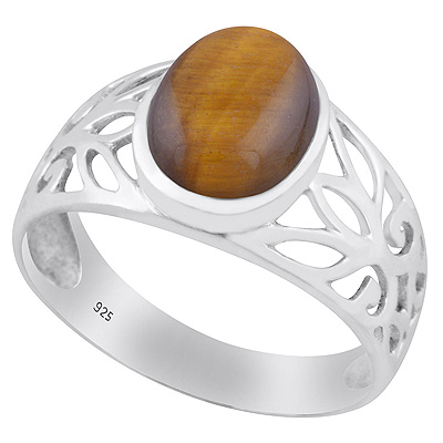 Stunning Cut Work Around Tiger's Eye Oval Shape 925 Sterling Solid Silver Ring
