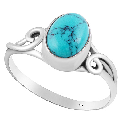 Minimal Wire Work Around Turquoise Oval Shape 925 Sterling Solid Silver Ring