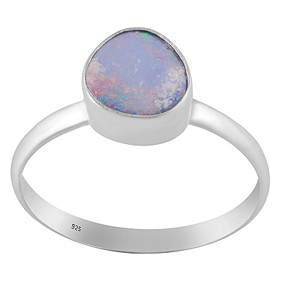 Alluring Play of Colors Gemstone Australian Opal Fancy Shape 925 Sterling Solid Silver Ring