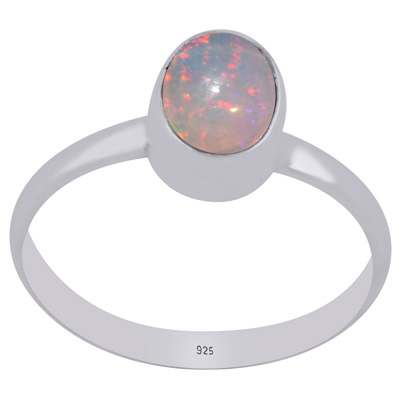 Plain Collet Natural Ethiopian Opal Oval Shape 925 Sterling Solid Silver Ring