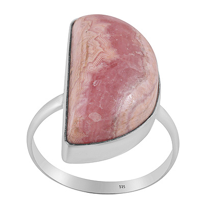Gorgeous Plain Rhodochrosite D Shape 925 Sterling Solid Silver Ring