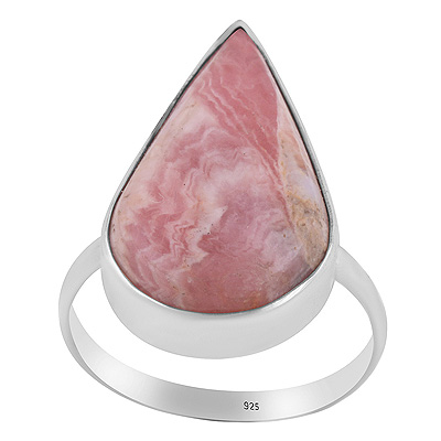 Gorgeous Plain Rhodochrosite Pear Shape 925 Sterling Solid Silver Ring