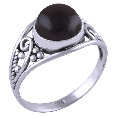Stunning Work & Rawa Work Around Black Onyx Round Shape 925 Sterling Solid Silver Ring