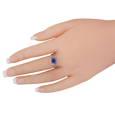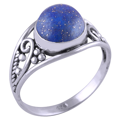 Stunning Work & Rawa Work Around Lapis Round Shape 925 Sterling Solid Silver Ring