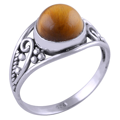 Stunning Work & Rawa Work Around Tiger's Eye Round Shape 925 Sterling Solid Silver Ring