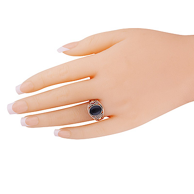 Alluring Handcrafted Rawa and wire Work Around Black Onyx Oval Shape 925 Sterling Solid Silver Ring