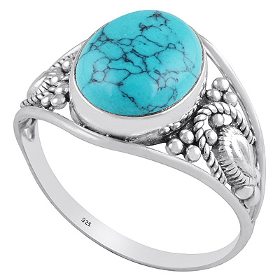 Alluring Handcrafted Rawa and wire Work Around Turquoise Oval Shape 925 Sterling Solid Silver Ring