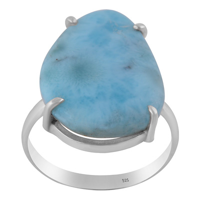 Beautiful Prong Setting Around Larimar Fancy Shape 925 Sterling Solid Silver Ring