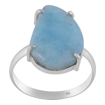 Beautiful Prong Setting Around Larimar Pear Shape 925 Sterling Solid Silver Ring