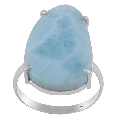 Beautiful Prong Setting Around Larimar Pear Shape 925 Sterling Solid Silver Ring