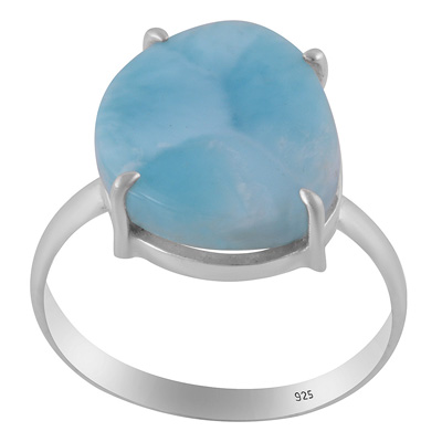 Beautiful Prong Setting Around Larimar Oval Shape 925 Sterling Solid Silver Ring