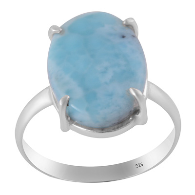 Home | Silver Rings | Cabochon Rings | Beautiful Prong Setting Around Larimar Oval Shape 925 Sterling Solid Silver Ring