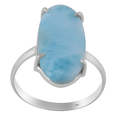 Beautiful Prong Setting Around Larimar Oval Shape 925 Sterling Solid Silver Ring