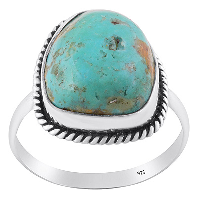 Gorgeous Textured Wire Around Mohave Turquoise Fancy Shape 925 Sterling Solid Silver Ring