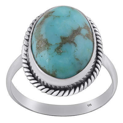 Gorgeous Textured Wire Around Mohave Turquoise Oval Shape 925 Sterling Solid Silver Ring