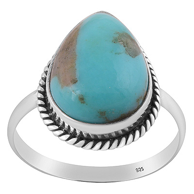 Gorgeous Textured Wire Around Mohave Turquoise Pear Shape 925 Sterling Solid Silver Ring