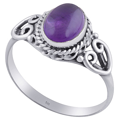Gorgeous Twisted Wire Work Around Amethyst Oval Shape 925 Sterling Solid Silver Ring