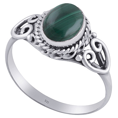 Gorgeous Twisted Wire Work Around Malachite Oval Shape 925 Sterling Solid Silver Ring